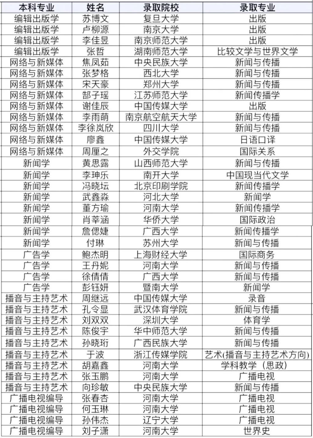 随着2023年国内各高校研究生录取名单的陆续公布,公司共有76名优秀员工成功考取硕士研究生。其中,推免员工38人、考研员工38人。他们以优异的成绩被复旦大学、南京大学、北京师范大学、中国传媒大学、暨南大学等知名高校录取。
