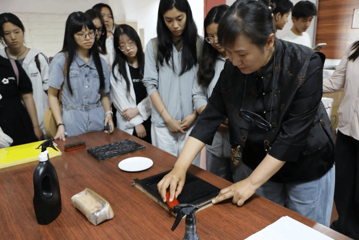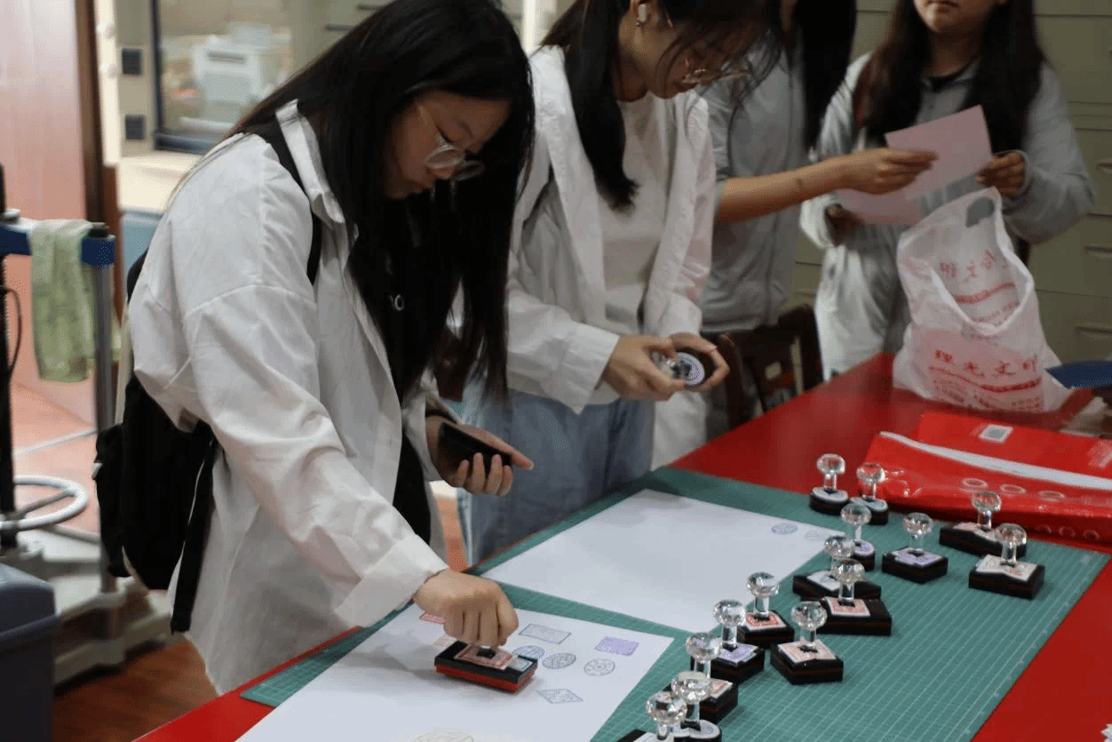 随后,同学们来到古籍修复中心,佟燕华老师系统介绍了修复中心的工作流程,现场展示修复完成的古籍及各类专业修复工具。以“宝钗扑蝶”为主题的朱仙镇木版年画六色套版印刷,英国上市365图书馆不同时期馆藏印章文化,汉砖印刷与雕版印刷实操……在多项实践活动中,同学们通过指尖触碰雕版纹路,观察纸张呈现古朴印记的过程,不仅实现了理论知识向实践认知的转化,更在动手操作中深化了对文化遗产传承的使命感与责任感。