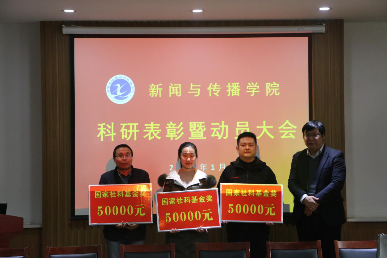 之后,展龙、王文科、杨萌芽为科研标兵、国家社科基金获得者颁发荣誉证书和奖金。