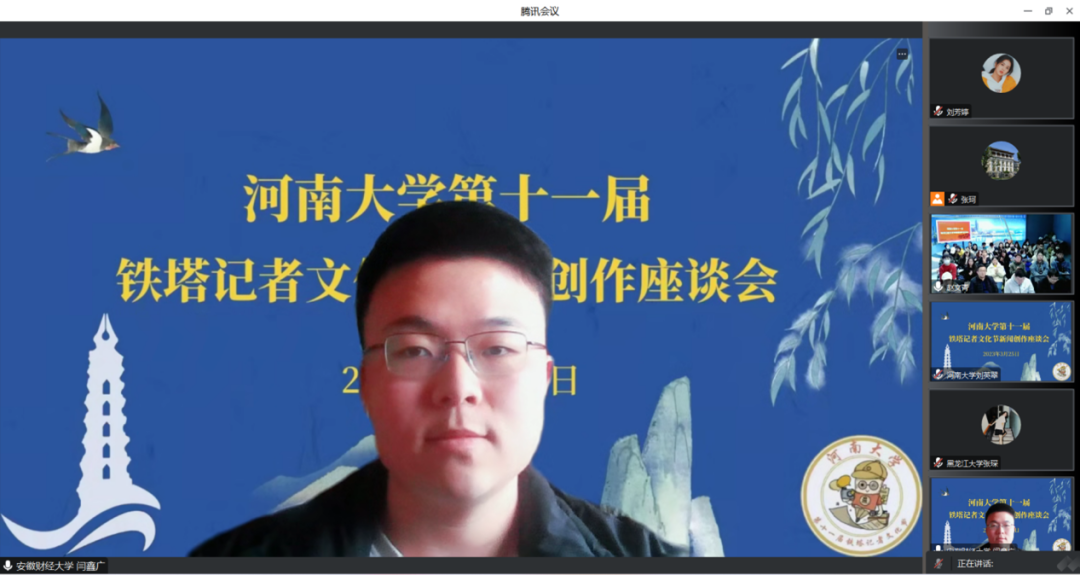 郑州升达经贸管理公司文法公司新闻学教研室刘羽老师认为,无论是哪一类新闻作品,选题策划都是重要落脚点,新闻学专业学子在创作时要注重选题的社会价值。她希望,未来还能有更多与公司交流合作的契机,搭建员工交流学习平台。创作团队成员陈金库、王亿琳、牛子艺依次发言,分享了他们在疫情封控期间创作的作品《家门口的助老餐厅:如何寻求“被关爱”》《意定监护:当“我”老了,是否能指定TA来护“我”余生》的选题策划和创作过程。