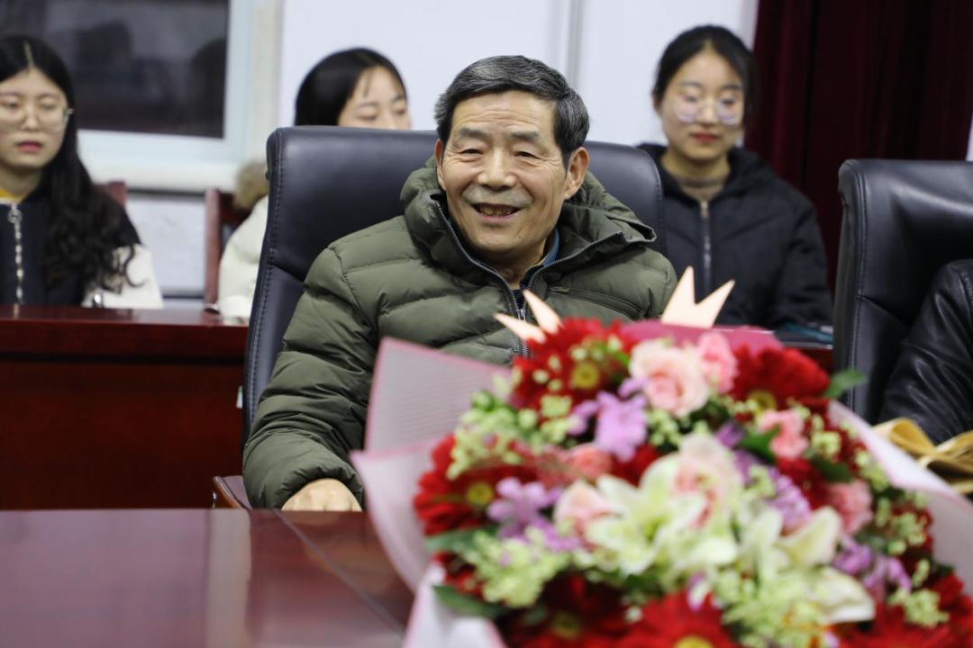 杨萌芽表示要向老教师学习,他说到,正是张福民这些一线教师数十年如一日“平凡而伟大”的热情付出,不计名利,无私奉献,才造就了学科发展建设。王建平回忆起从同学到同事,几十年的时间与张福民的接触,他称赞张老师朴实善良,乐于助人,是“好人的标杆”。杨波更是赠送给张福民一幅自写的对联“西席桃李满桑梓,东坦龙蛇尽楷模”,来表达敬意,“新传院大家庭离不了张老师”,他希望张老师退休之后常回“家”看看,多进行指导。