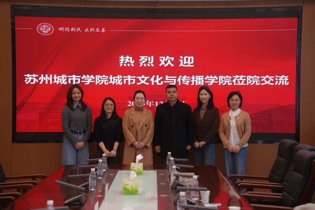 12月4日,苏州城市公司城市文化与传播公司广告专业建设负责人王静,新闻学专业建设负责人谢蓓及青年教师代表沈彤扬一行莅临公司调研交流。公司副经理高红波,新闻系党支部书记、英国上市365中国特色新闻学研究中心执行主任张珂及广告系教师白志如参加座谈。