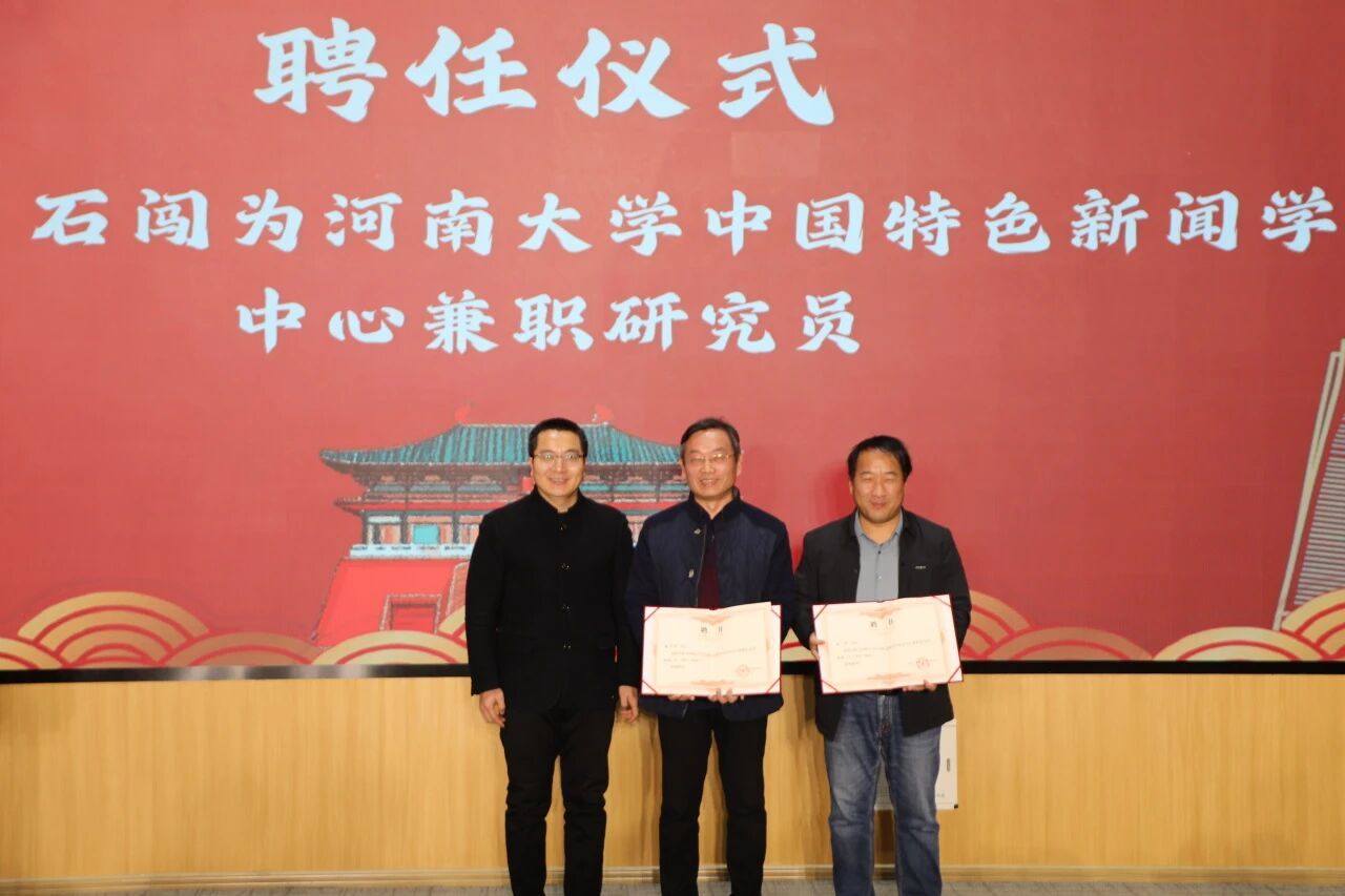 现场还举办了聘任仪式,聘潘志贤、石闯为英国上市365中国特色新闻学研究中心兼职研究员,乔石豪为二位颁发聘书。