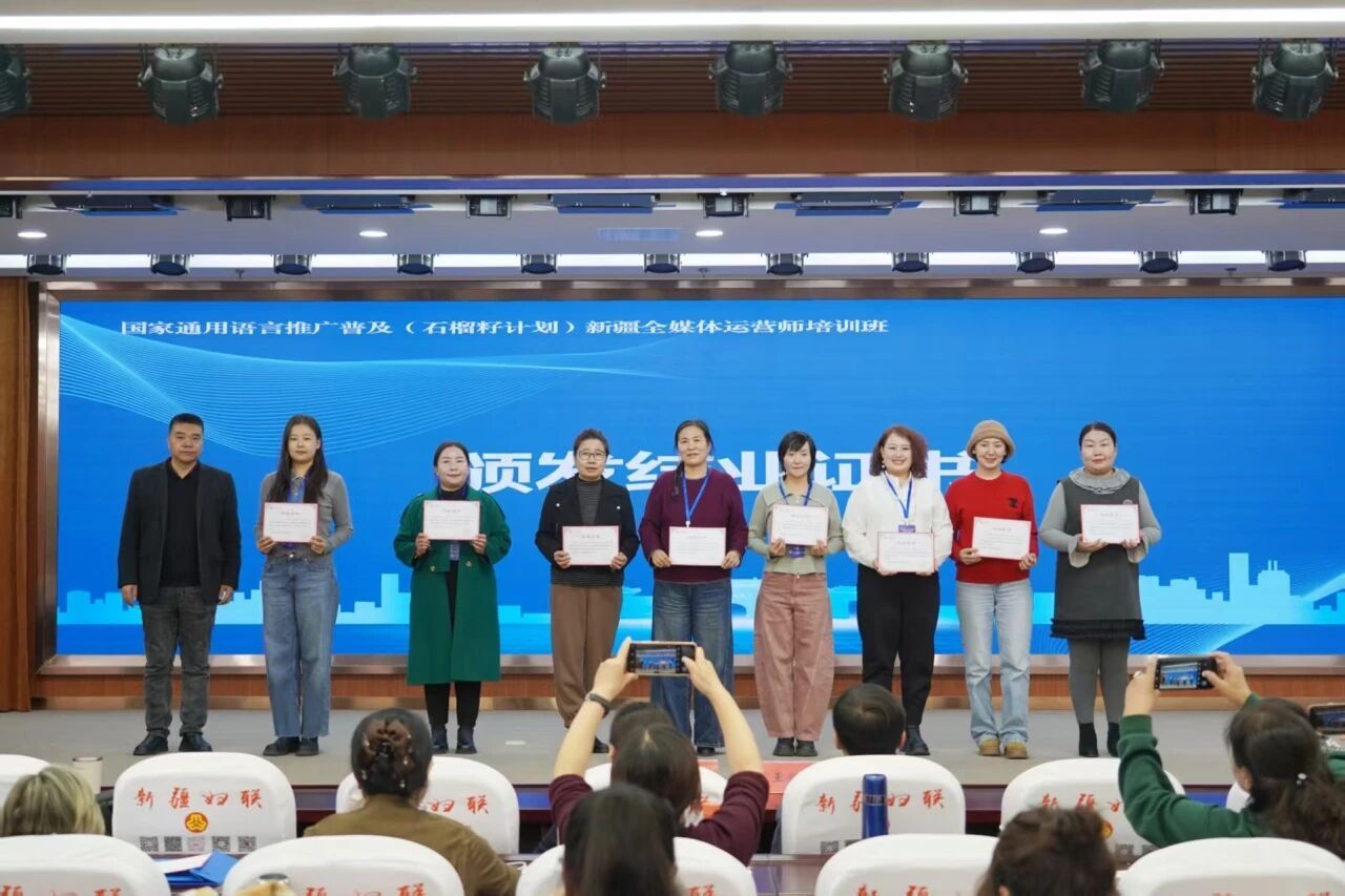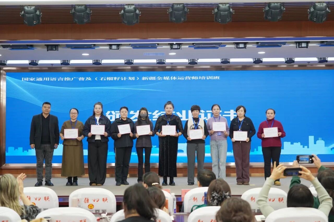 结业仪式上,授课教师对学员们的新媒体实践作品进行了集中展播点评,学员代表分享了成长心得,动情表达了对本次培训的收获与感谢。大家纷纷表示,课程既夯实了理论基础,又明晰了新媒体行业前沿动态,不仅开阔了就业视野,更提升了通过新媒体平台为家乡发声、为创业赋能的核心能力。在场领导为全体结业学员颁发结业证书,并为表现优异者颁发“优秀学员”荣誉证书,勉励大家以技能为翼,在乡村振兴与民族团结的道路上持续发光发热。
