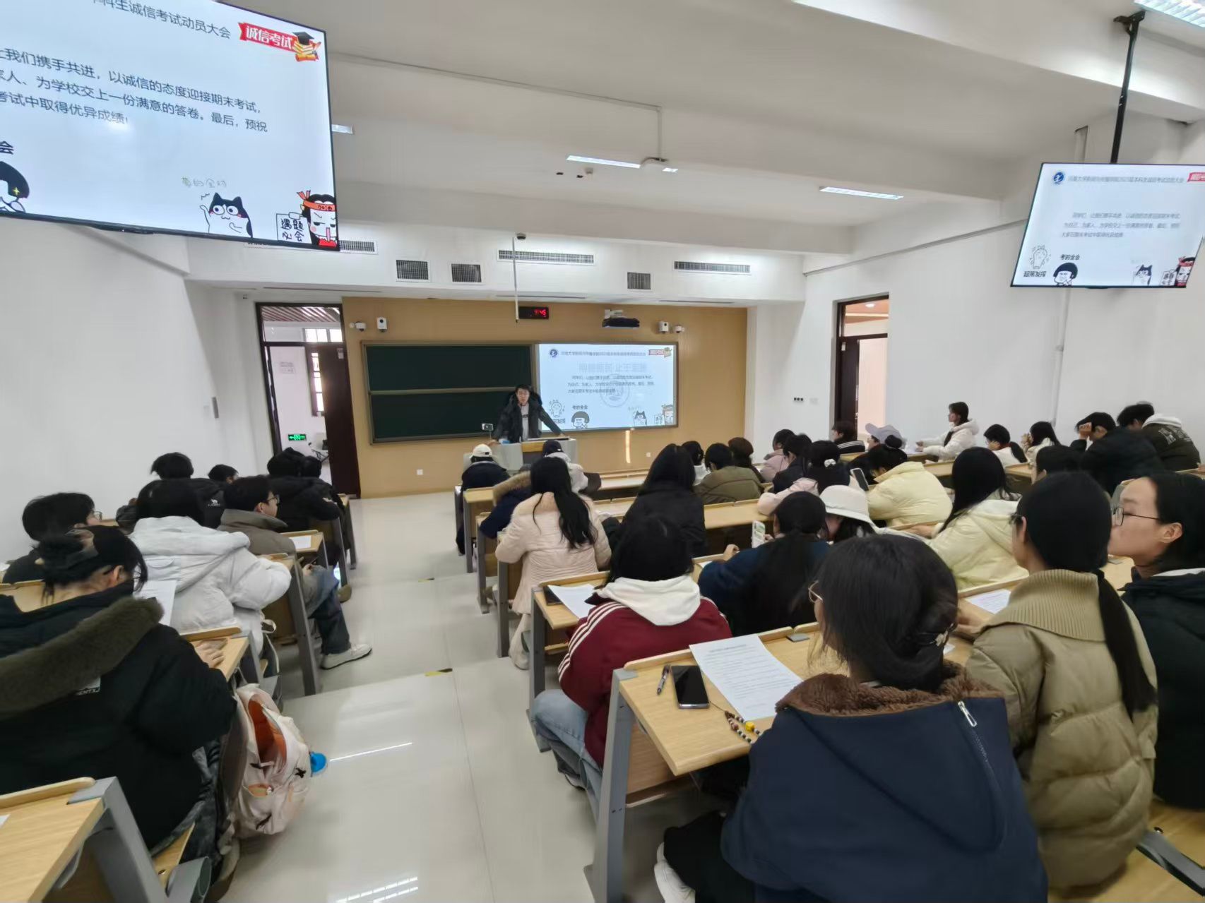 各年级辅导员在会上着重强调,诚信不仅是为人处世的立身之本,更是期末考试必须坚守的基本准则。他们向全体同学发出号召,要主动树立诚信应考意识,自觉践行诚信精神,严格遵守考场各项纪律,携手维护公平、公正的考试秩序。