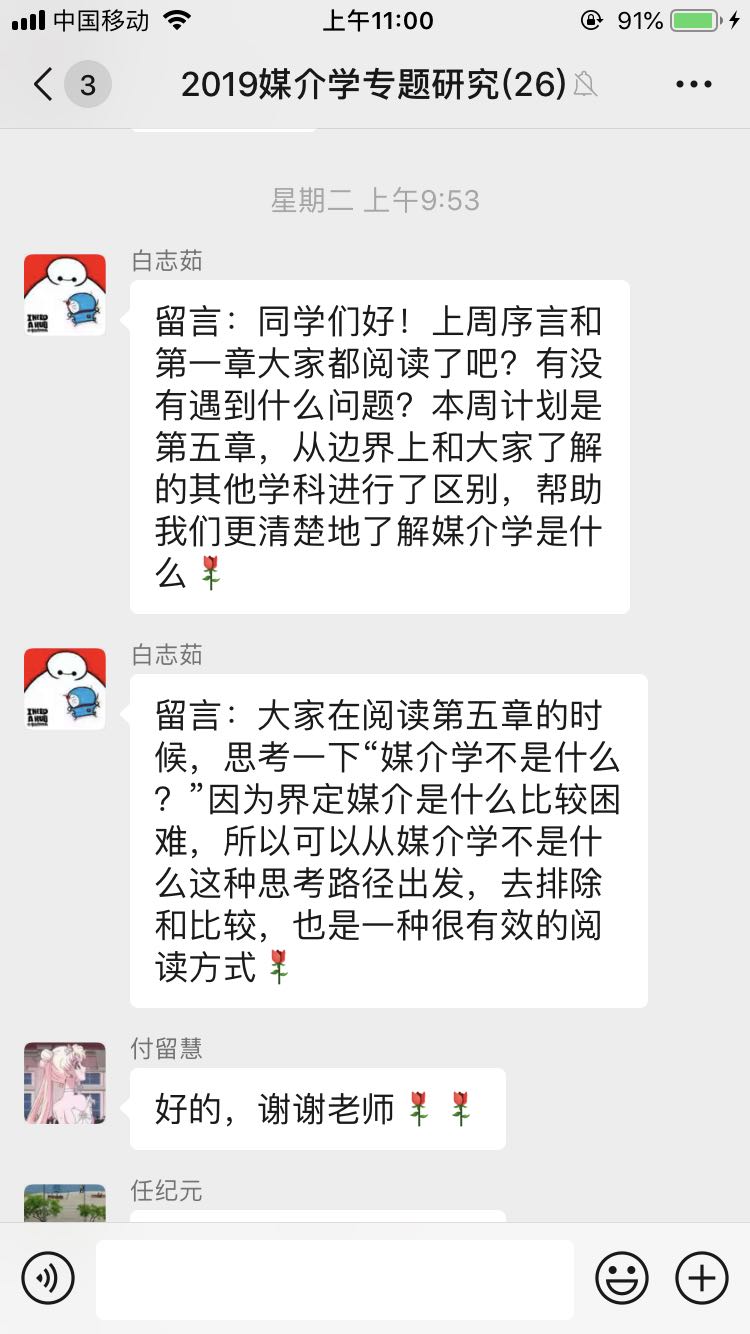 2019级新闻与传播专业研究生贾逸表示,她现在每天都向导师和辅导员“打卡”报平安,用实际行动支持公司疫情防控期间实行的“双线管理”和“网格管理”。隔着屏幕听老师讲课的不习惯,正慢慢被线上的“欢乐互动”和老师“干货满满”的讲评取代。看到师兄师姐和导师在群里热烈的地讨论论文的细节,她很受教,只有更努力才能迎头赶上,不负河大新传的好时光。