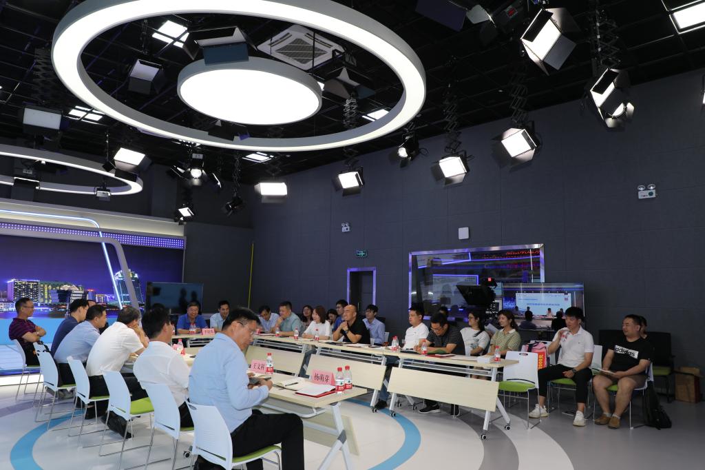 座谈会结束后,宋纯鹏、杨朝阳参观了省教育新媒体暨舆情研究中心、虚拟仿真演播室、灿金工作室等。