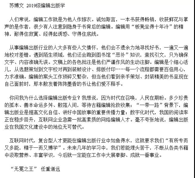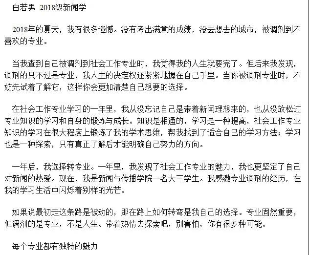 “三百六十行,行行出状元”,不仅行业如此,专业亦是如此,选择自己心仪的专业,在自己专业领域里大干一番,不负自己,不忘初心,用热爱去抵岁月漫长。