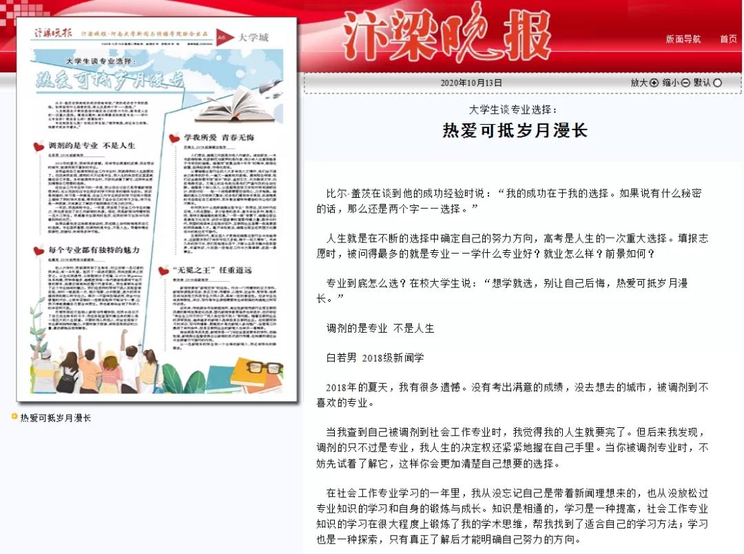 《汴梁晚报》携手公司学子本期再度与公司合作推出板块“老员工谈专业选择:热爱可抵岁月漫长”