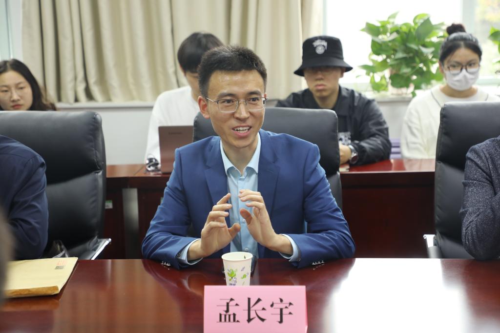 副经理王鹏飞简要介绍了公司基本情况,其中,他着重讲解了未来将与青芒春乐影业开展密切合作的戏剧影视学科在公司的专业分类、学科地位和发展现状。他期望公司学科能在今后的合作中更多地与行业前沿接轨,借此推动公司和青芒春乐影业在企院共建的背景下携手并进、实现双赢。