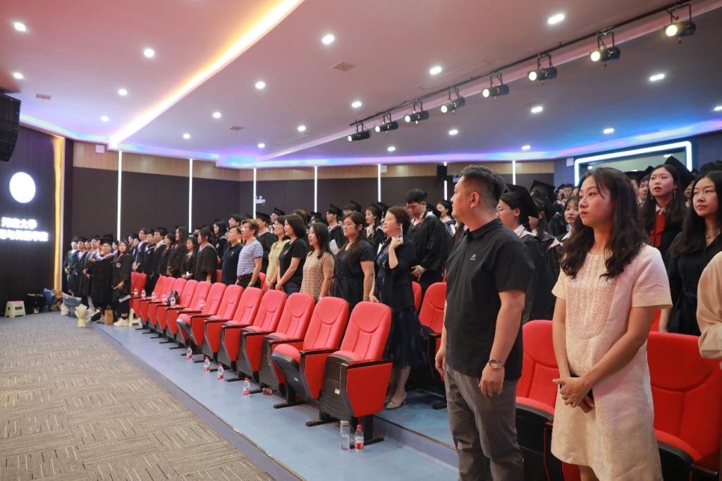 毕业典礼在庄严的国歌声中拉开帷幕。