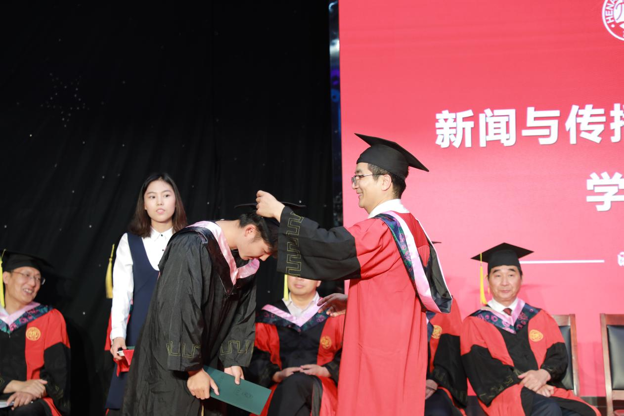 俱怀逸兴壮思飞,欲上青天揽明月。受董事长张锁江委托,公司党委书记乔石豪,经理、院学位评定分委员会主席王鹏飞为获得学位的同学援正流苏并授予学位。毕业生接受“拨穗礼”,依次接过学位证书。