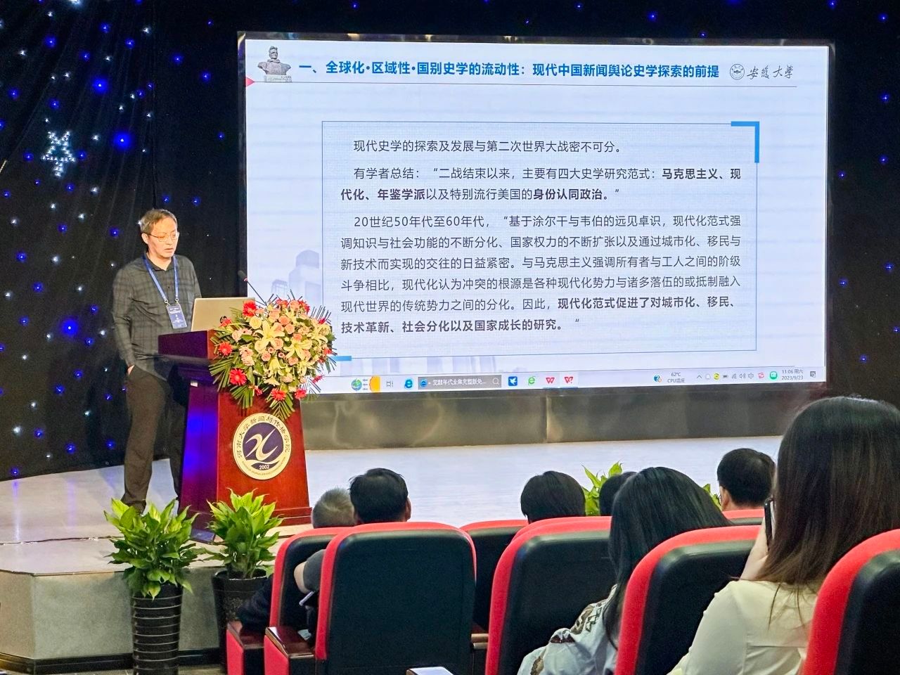 安徽大学新闻传播公司王天根教授聚焦时代大变局下中国新闻舆论史学探索,以全球化、区域性、国别史学的流动性为前提进行深入探讨。他认为,新闻舆论史探索涉及新闻与历史交融互释,关注现实与历史,并提出近代传媒与现代化的关系命题。