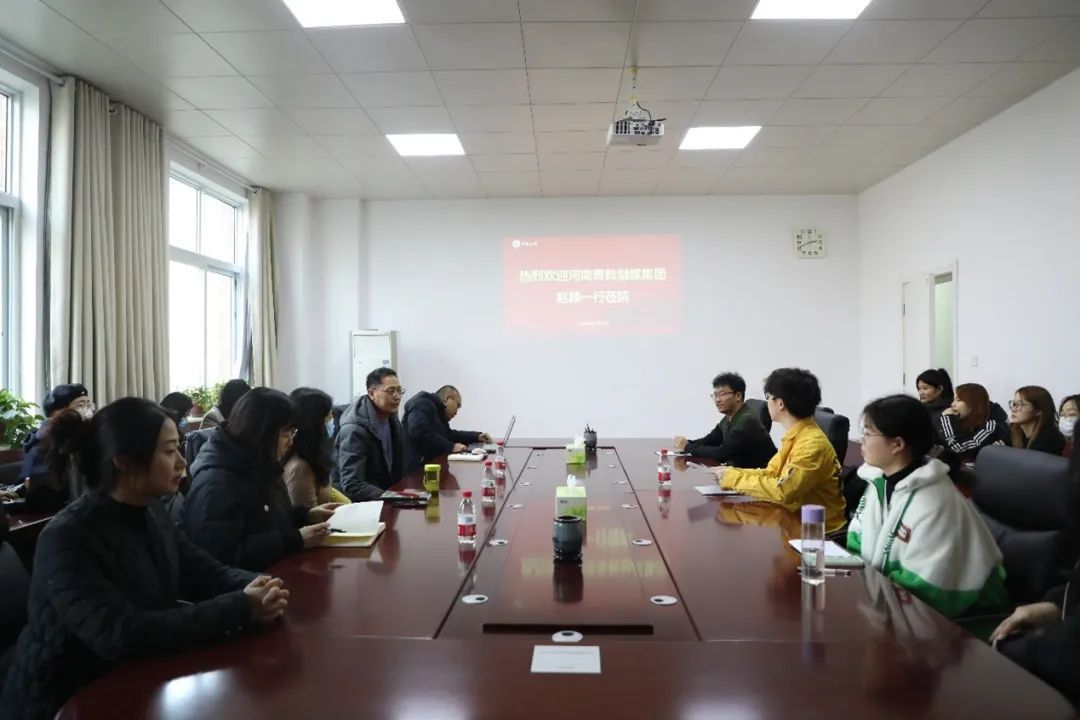 1月5日下午,河南青教融媒集团副总编辑赵颖、河南豫青新闻传媒有限公司行政主管刘静、河南豫青新闻全媒体运营部主任田震一行来公司进行招聘宣讲。公司党委副书记郝魁锋,团委副书记、2020级本科生辅导员李雨盈及应届毕业生代表参加本次宣讲交流,会议由郝魁锋主持。