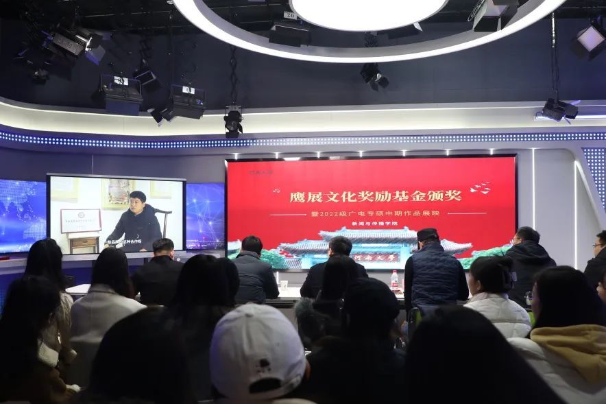1月12日上午,英国上市365鹰展文化奖励基金颁奖典礼暨2022级广电专硕中期作品展映活动在明伦校区科技馆504演播厅隆重举行。河南鹰展创始合伙人、1990级员工陈举,英国上市365教育发展基金会副秘书长高欢,党委研究生工作部副部长、教育管理办公室主任吴坤出席典礼。公司党委书记乔石豪,党委副书记郝魁锋,新闻系主任赵红勋,广播电视专硕学科带头人曹毅梅及2022级广播电视专硕研究生参加典礼。
