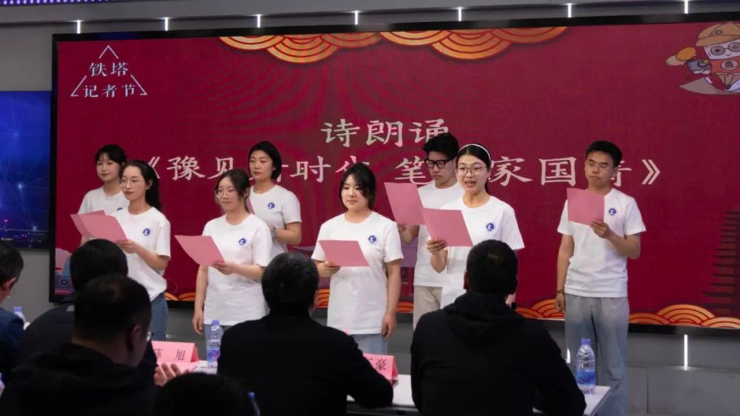 立潮头之上,颂时代新风。活动以2021级新闻系员工诗朗诵《豫见新时代,笔书家国情》开启了序幕,他们以饱满的热情、铿锵的声音讲述中原故事,以及年轻一代对“记者”身份和所担负的时代使命的理解。