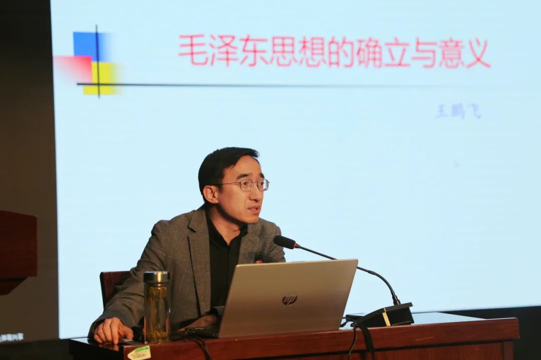 王鹏飞以“毛泽东思想的确立和意义”为主题展开讲述,围绕“为什么是毛泽东”“毛泽东思想如何确立”和“毛泽东思想的历史意义”三个方面,讲述了毛泽东思想的逐步形成和确立过程,以及毛泽东思想对中国共产党和社会主义建设的历史意义。