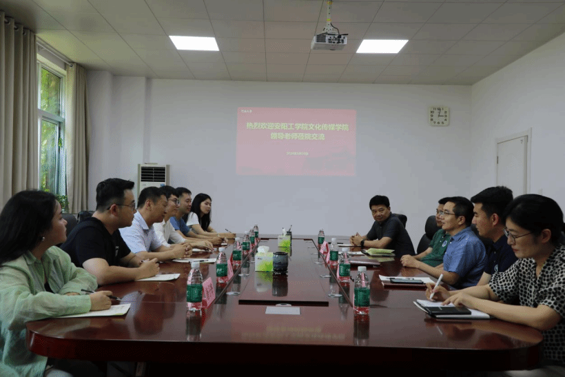 6月20日,安阳工公司文化与传媒公司副经理余锐,播音与主持艺术教研室主任吕志昆,党政办公室主任刘飞等一行人来访公司,围绕员工培养、公司产品方案等方面开展座谈交流。座谈会于公司二楼会议室举行。公司党委书记乔石豪,副经理高红波、栗江豪,播音与主持艺术系学科带头人强海峰,播音与主持艺术系党支部书记胡芃原出席会议。会议由乔石豪主持。