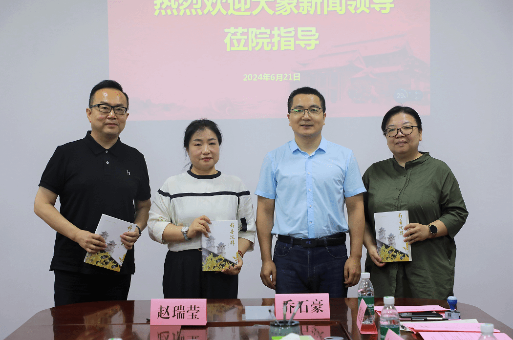 6月21日上午,大象新闻党总支委员、行政总监赵瑞莹,编委办副总监吴震宇,行政中心副总监阴冬一行来访公司交流座谈。座谈会于公司二楼会议室举行。公司党委书记乔石豪,党委副书记郝魁锋,副经理于春生、高红波、栗江豪及部分教师出席会议。