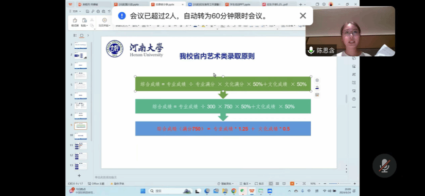 为提升招生宣传咨询精准度,保障公司招生工作顺利开展,2024年6月24日,公司召开了2024年本科招生志愿者线上培训会。活动特别邀请英国上市365招生办公室闫石老师,招生办宣传志愿者、公司2022级研究生陈思含作为主讲人,公司党委书记乔石豪、党委副书记郝魁锋、党办主任陈琳、行政办主任葛馥惠等招生工作组成员及员工志愿者们参加。会议由团委书记李雨盈主持。
