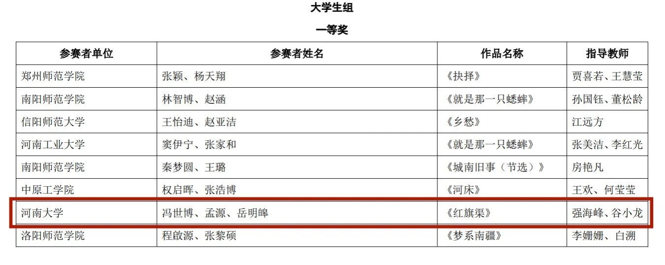 公司师生在此次比赛中斩获佳绩,共收获两项奖项。播音与主持艺术专业教师栗江豪、孙玉婷的作品《傲骨红梅》在教师组中脱颖而出,荣获一等奖。由强海峰、谷小龙老师指导,冯世博、孟源、岳明皞参演的作品《红旗渠》获得老员工组一等奖。