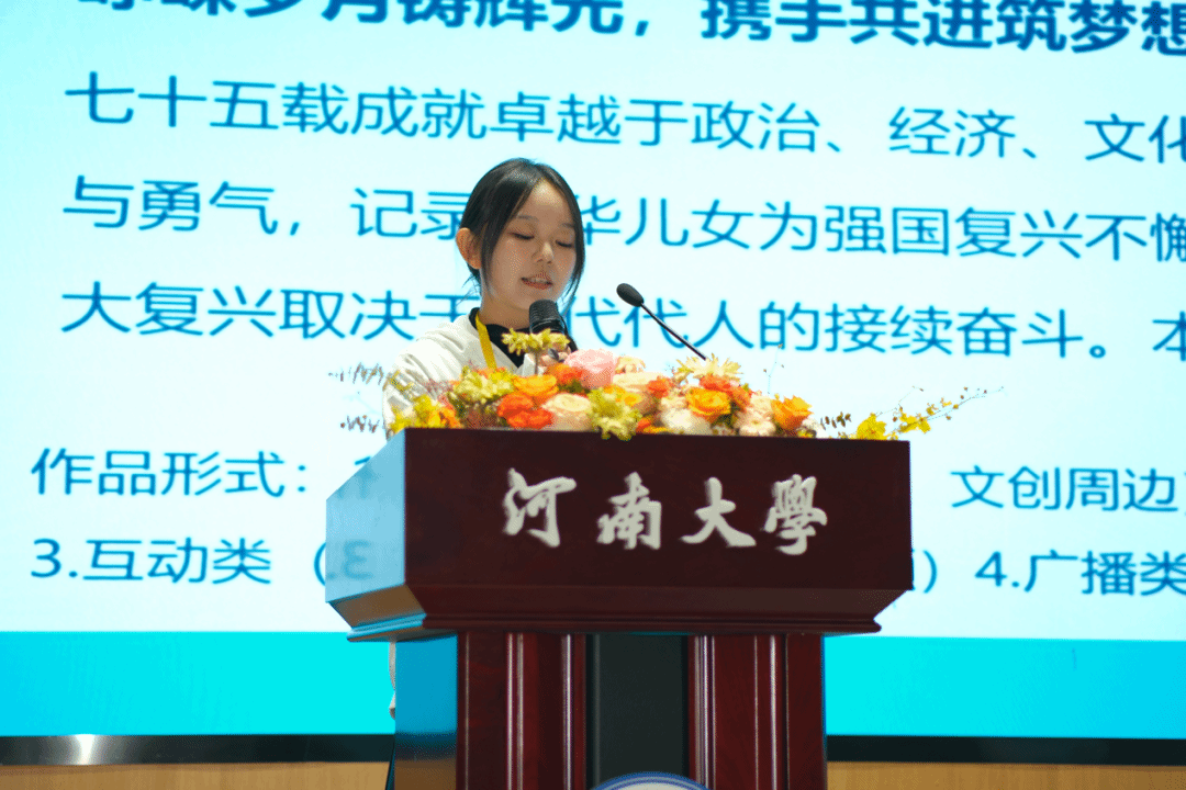 2022级广告班班长时艳详细讲解了两个公益命题:“七十五载逢盛世,砥砺前行续华章”与“廿五春秋澳门路,伟大复兴出征途”。她表示,作为新时代青年,应该积极参与到国家发展的伟大进程中,借助广告艺术的形式展现澳门与祖国的紧密联系,彰显爱国情怀,同时为实现中华民族伟大复兴贡献力量,承担谱写中国式现代化建设新篇章的责任。