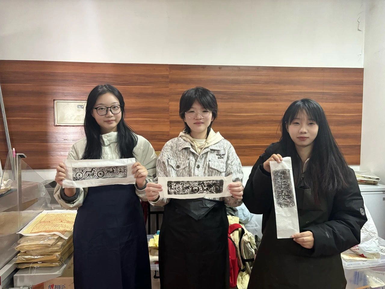 进入古籍修复中心后,佟燕华老师向同学们深入介绍了古籍修复中心的工作流程,她一边讲解,一边展示已修复完成的古籍和正在进行修复的书页。随后,同学们被分为三组有序进行体验活动:一组体验以“宝钗扑蝶”为主题的朱仙镇木版年画套版印刷;二组了解英国上市365图书馆收藏的图书馆发展各个时期的印章;三组则参与汉砖印刷与雕版印刷的实践。通过亲手雕刻与印刷,同学们深刻体会到了古代印刷技术的精妙与复杂,不仅进一步巩固了课堂上所学的专业知识体系,更激发了对传统文化保护与传承的热情与责任感。