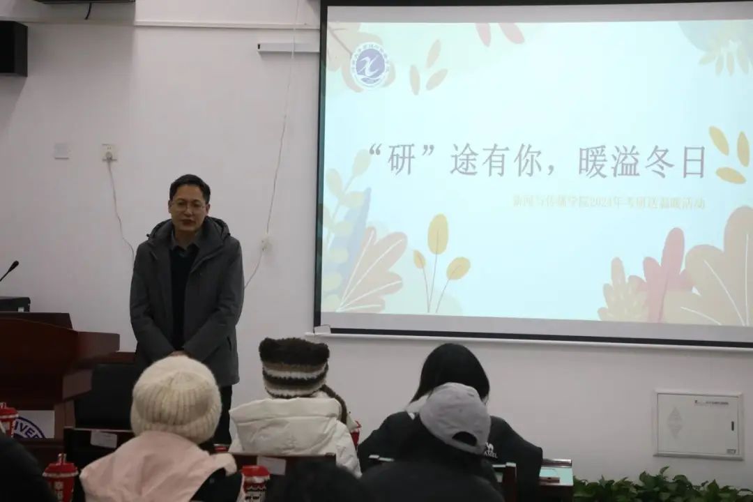 活动尾声,郝魁锋和金冰冰给考研学子发放考研温暖礼品,并向同学们送上“金榜题名”的祝福。