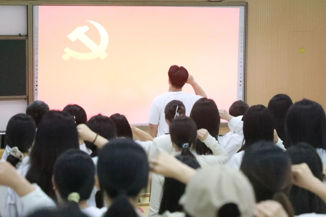 本科生第四党支部党员李迁禧带领全体党员重温入党誓词。党员们高举右拳,齐声庄严宣誓,铿锵有力的誓言彰显出新时代青年党员为共产主义事业奋斗终身的崇高理想信念。