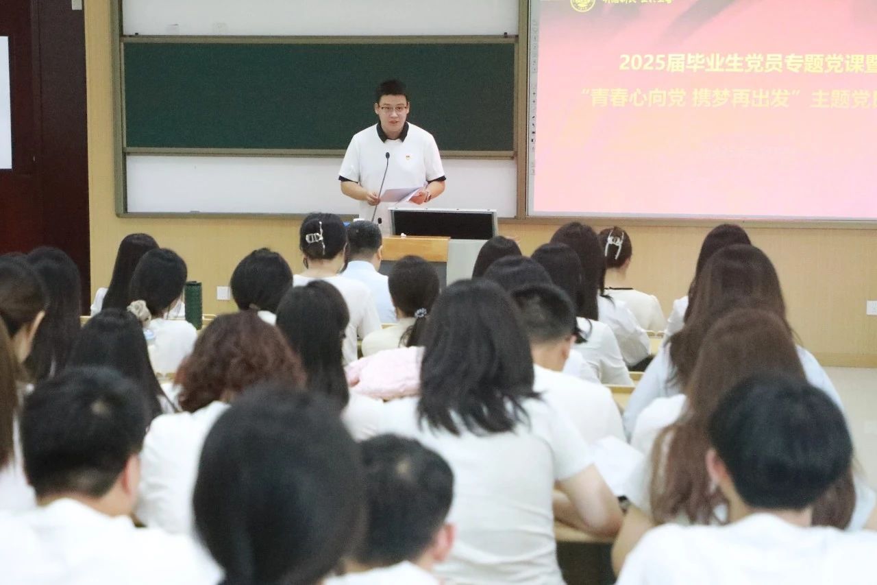 李雨盈带领全体党员学习2025年习近平总书记关于青年的重要讲话精神,深入解读总书记对青年一代的殷切期望与嘱托,激励毕业生党员在新征程中勇担使命,以青春之我为中国式现代化建设贡献力量。