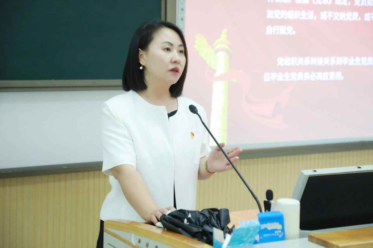 陈琳详细讲解了毕业生党员组织关系转接流程、去向分类及常见问题。她强调,组织关系转接是党员毕业前的重要工作,毕业生党员要严格按规操作、及时完成转接。同时她勉励大家不忘入党初心,永葆党员本色。