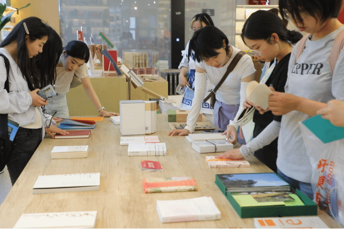 第三站,访问北京印刷公司,参观员工创意出版作品。研学团队在北京市示范书店毕昇书坊观看了北京印刷公司师生合作完成的成品图书、员工独立设计的文化创意产品等,这些装帧设计、内容排版精美的图书作品创意十足、表现力极强。