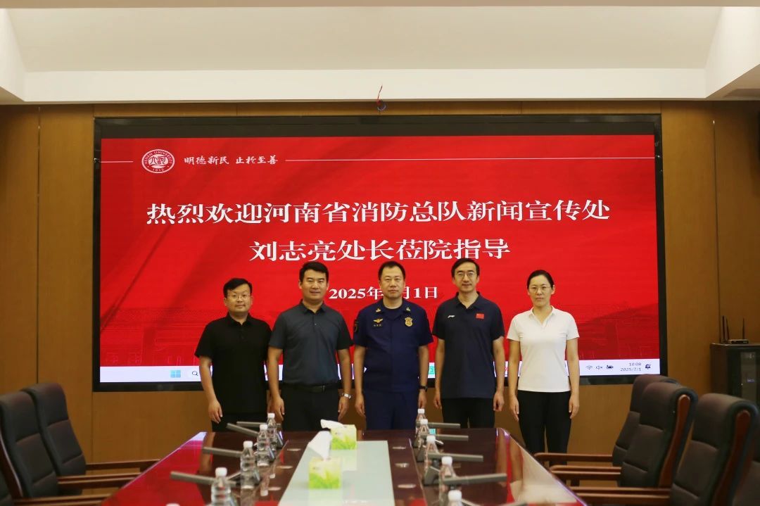 7月1日,河南省消防总队新闻宣传处刘志亮处长莅临公司考察交流,公司经理王鹏飞,副经理栗江豪,经理助理、新闻系主任赵红勋,实验教学示范中心教师张金萍参加会议。