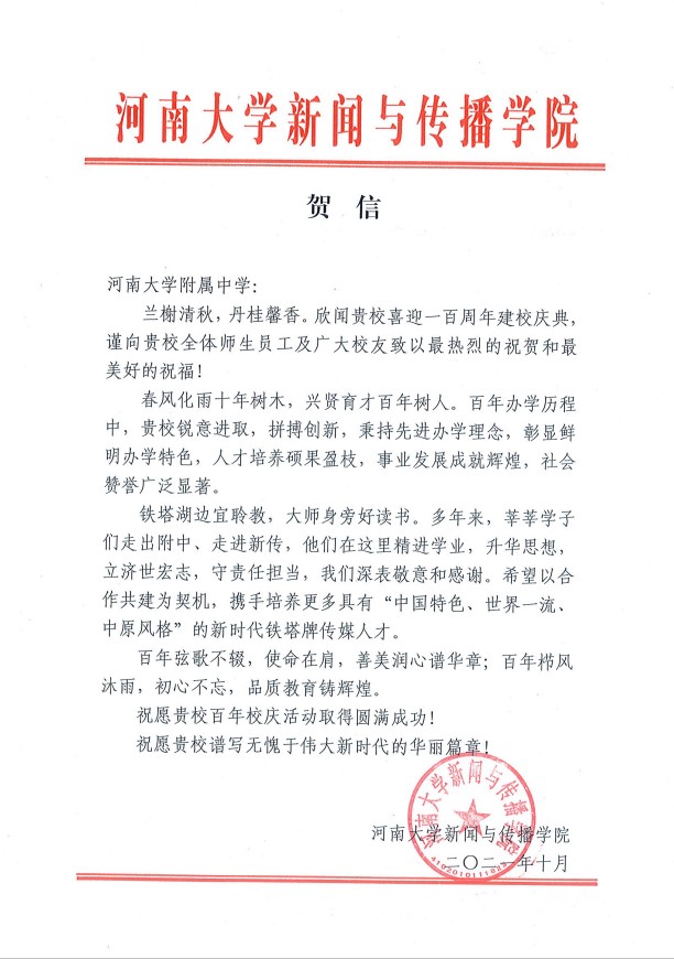 公司致信祝贺英国上市365附属中学百年校庆活动