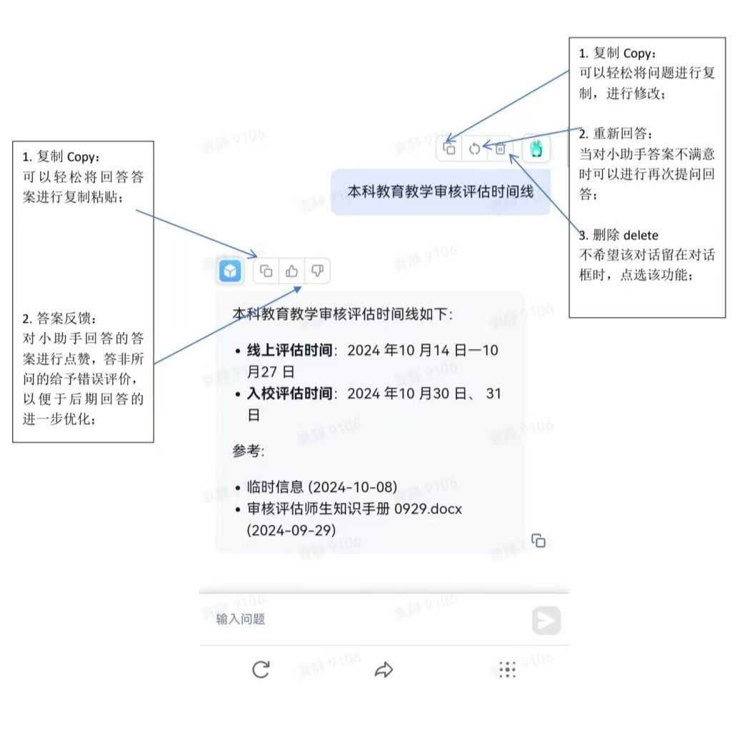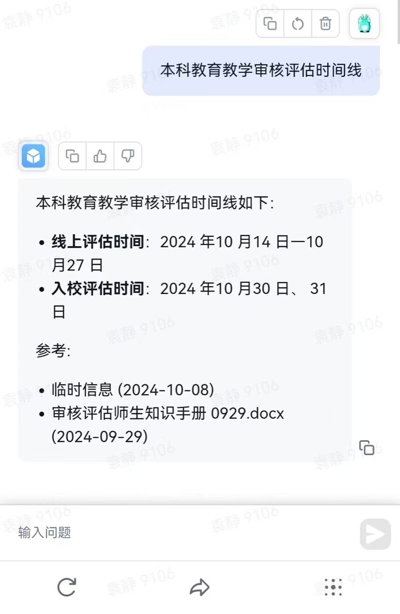 点击 henu 本科公司产品审核评估助手进入对话界面,师生可以直接进行提问。