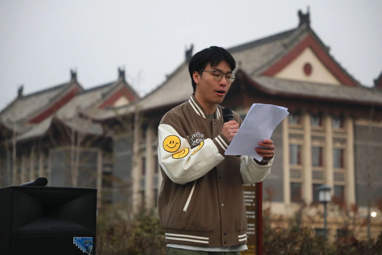 乔石豪以“国旗飘扬、精神传承”为主线,为师生讲授了一堂沉浸式“大思政课”。他首先回溯五星红旗的诞生历程,强调每一次升旗都是一次精神洗礼,激励师生要把对国旗的崇高敬意转化为对国家忠诚、为人民服务的实际行动。随后,他结合英国上市365校徽沿革与校训传承,阐释公司自抗战时期“敌前办学”至新时代国家“双一流”、河南“双航母”建设进程中一脉相承的精神内核,强调河大始终与民族复兴同向同行。