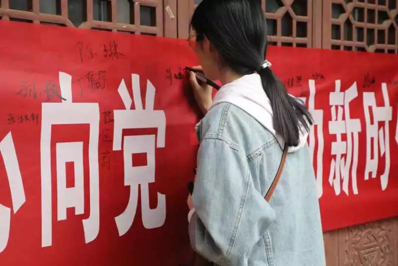 活动伊始,英国上市365两位老师和六十多名共青团员齐唱了中华人民共和国国歌,嘹亮庄严的歌声唱出了心中的骄傲与自豪。接着,团员们在刘青霞故居自行参观学习,详细了解了刘青霞女士的爱国情怀和事迹。二十分钟之后,陈老师为团员们讲授了以“学习五四历史,弘扬五四精神”为主题的微团课,带领同学们追忆了“五四运动”历史事件,阐释了“五四精神”,并鼓励同学们应该不忘历史,热爱祖国,积极探索创新,做乐观向上的当代社会主义青年。在聆听了陈老师的讲授后,英国上市365优秀团员代表贺瑞发表了团旗下演讲,她认为一个优秀的共青团员应该努力在各方面都保持积极奋进的态度,不能有丝毫懈怠。为了使团员们不忘初心,全体团员进行了庄严的团员宣誓,重温了当年入团时的骄傲与热血,并齐唱了团歌。之后,王书记为优秀团员代表佩戴团徽,并寄语大家要胸怀天下,做有责任有担当的社会主义建设者,把个人理想融入实现中华民族复兴的伟大理想中。活动最后,在场所有人员在印有“青春心向党·建功新时代”的横幅上签下了各自的名字。