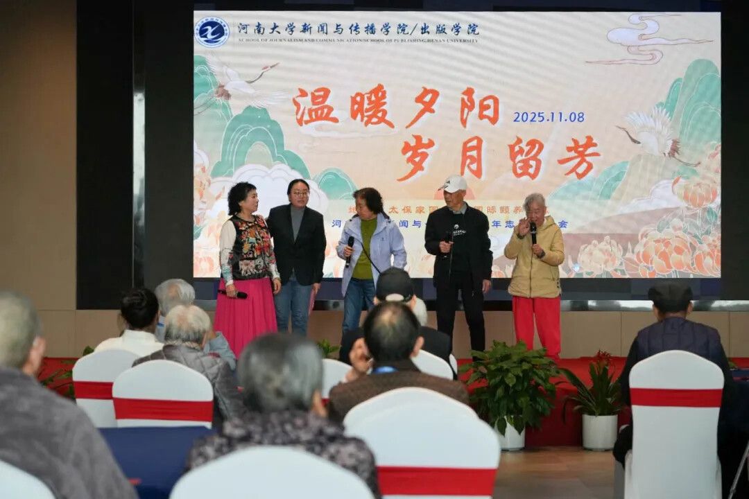 才艺表演环节,志愿者与老人们同台献艺,携精彩节目传递真挚祝福。多人合唱《我爱你中国》,情感饱满,五星红旗挥舞间点燃全场;舞蹈《我的未来式》《盛世》与左奶奶的《卓玛》各具风采,尽显青春活力与灵动韵味;奶奶朗诵的《青春中国》铿锵动容,集体三句半《情暖金秋》诙谐暖心。