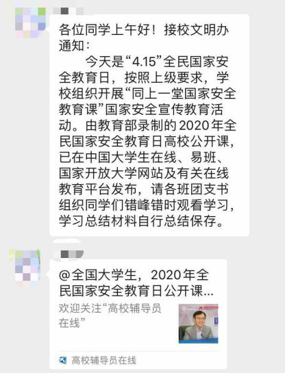 围绕今年“坚持总体国家安全观,统筹传统安全和非传统安全,为决胜全面建成小康社会提供坚强保障”的活动主题,公司团委通过官方微信公众号宣传平台推送了相关学习材料,介绍了“全民国家安全教育日”的由来,解答了“什么是国家安全”、“破坏国家安全的行为有哪些”等相关问题,还通过设置问题的形式对同学们进行了小测验和知识科普,让同学们对国家安全知识有了更深入的学习。除此之外,各党支部、团支部和各年级积极组织员工学习团公众号的推送内容,并集中观看了由教育部录制的“同上一堂国家安全教育课”高校公开课,观看后员工们进行了热烈的讨论学习,进一步探讨了个人如何承担维护国家安全的义务。