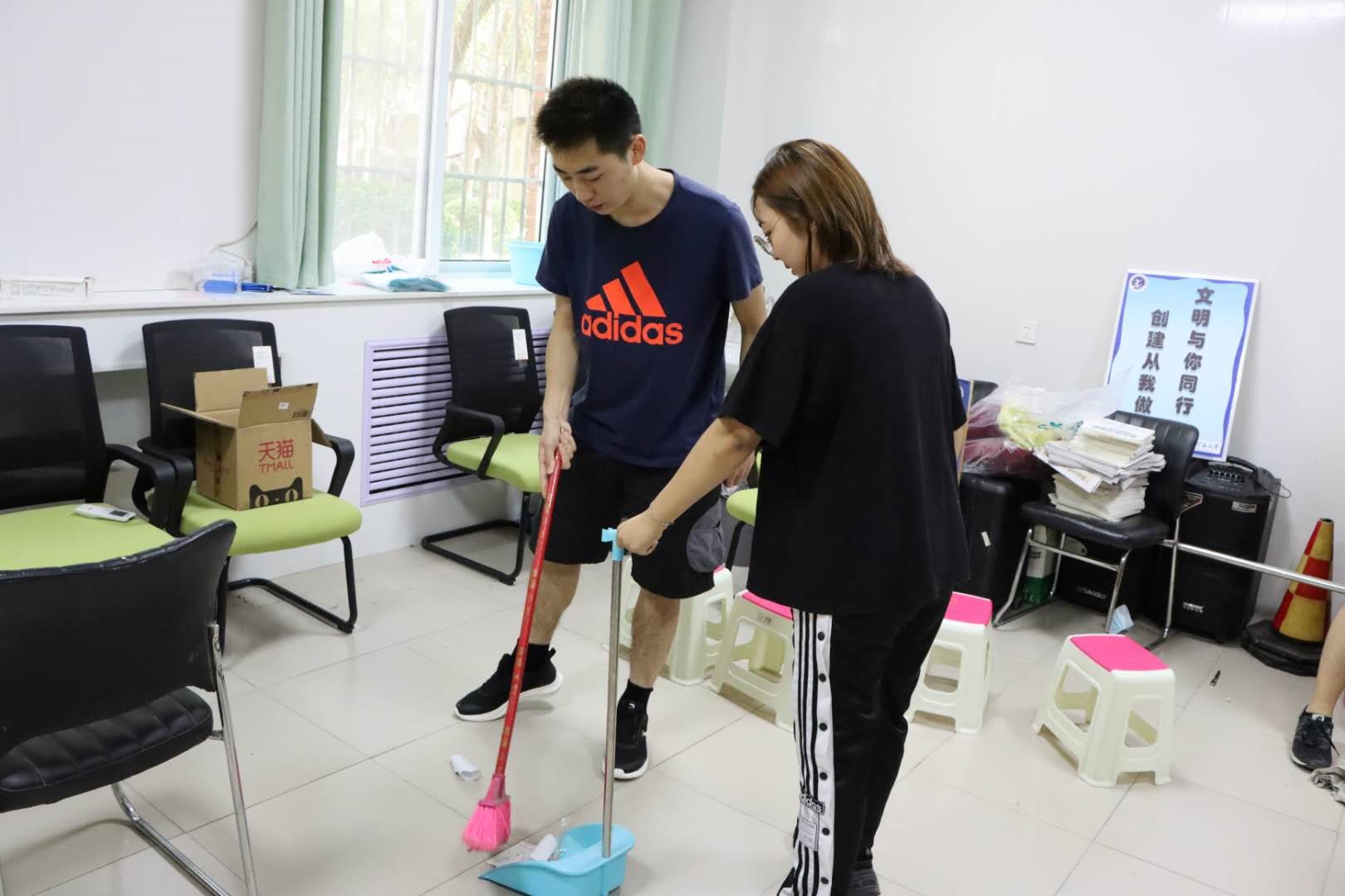 上午10点,全体参与劳动的员工在院门口集合,领取劳动工具、分配任务,正式开始劳动。员工们首先来到公司清洁卫生区域,不放过任何一个角落,认真清理了烟头、包装袋、卫生纸等垃圾。随后,又将教学区域划分为大厅、教室、走廊等几大任务区,分组后又投身于劳动中,干净整洁的教学环境为本次实践活动画上了一个圆满的句号。