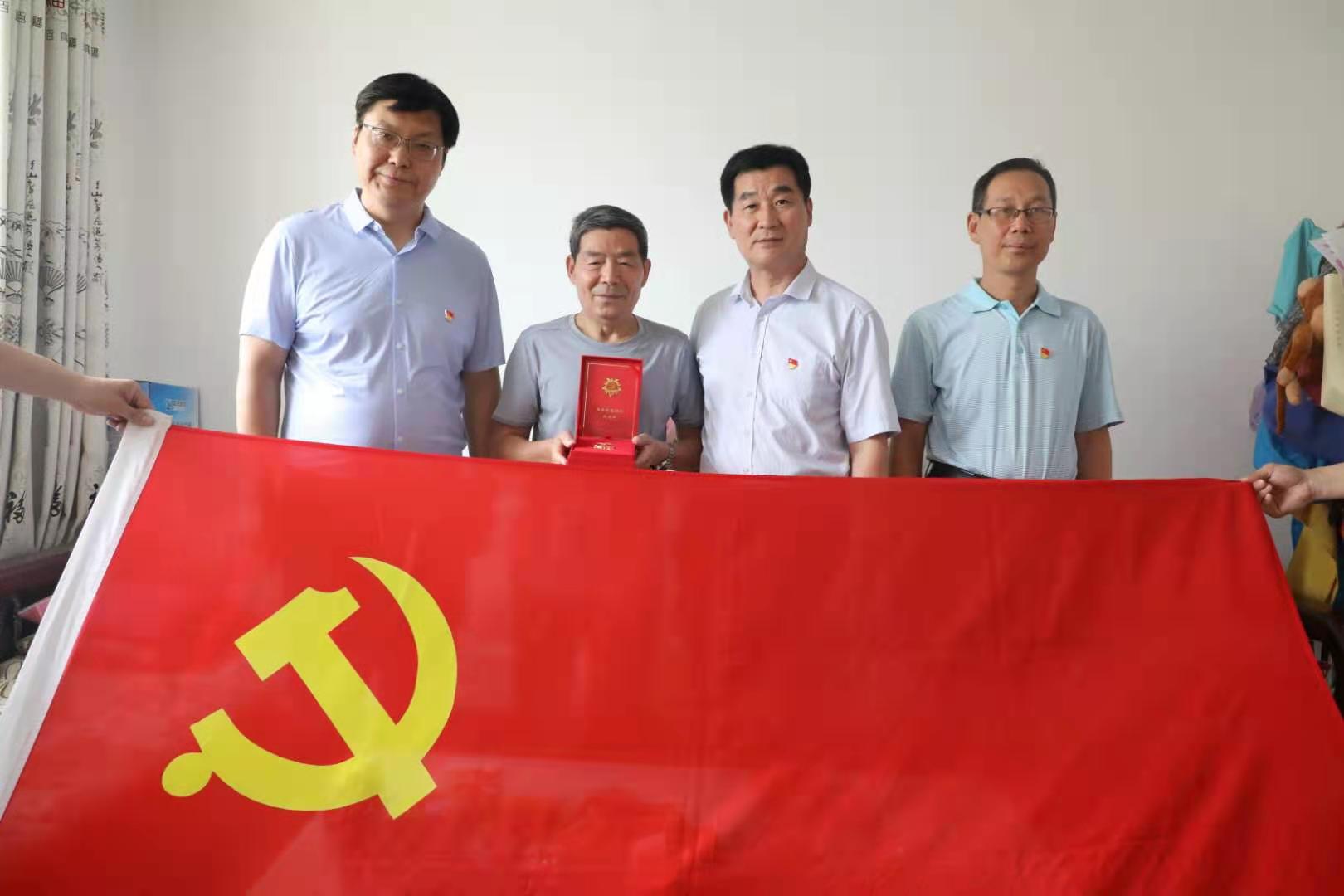 兢兢业业数十年,担当己任丹心延,为迎接中国共产党百年华诞,发扬老党员们的先进事迹及崇高精神,6月29日,公司党委书记王文科、经理杨萌芽、正处级组织员郭鸿昌及师生支部书记代表走访慰问张福民、武国斌等老党员代表,代表公司为他们送去温暖的问候并为党龄超过50年的王敬业同志颁发“光荣在党50年”纪念章。