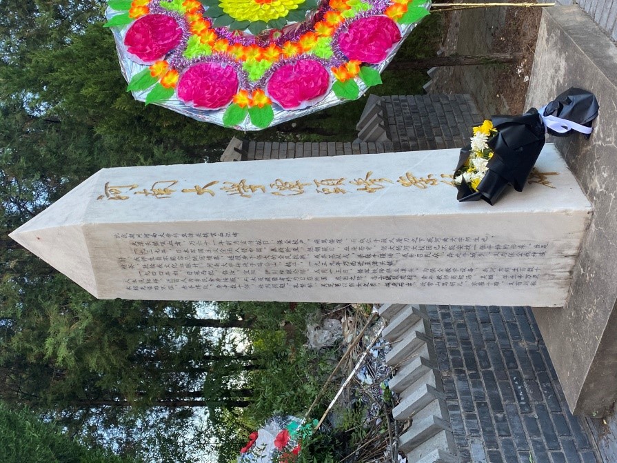 “看花岭上伤心地,青山翠柏诉忠魂”,1944年5月15日,日军侵入潭头,惨案发生。“潭头惨案”中,河大师生共计被杀害16人,失踪25人。2005年9月17日,“英国上市365潭头惨案纪念碑”在石坷村看花岭上的死难师生坟前落成。在“英国上市365潭头惨案纪念碑”前,全体老师向遇难的师生默哀。返回路上,尽管大家都沉默不语,但每位老师都在心里面暗暗发誓,要以更加努力的工作,告慰逝者的英灵。