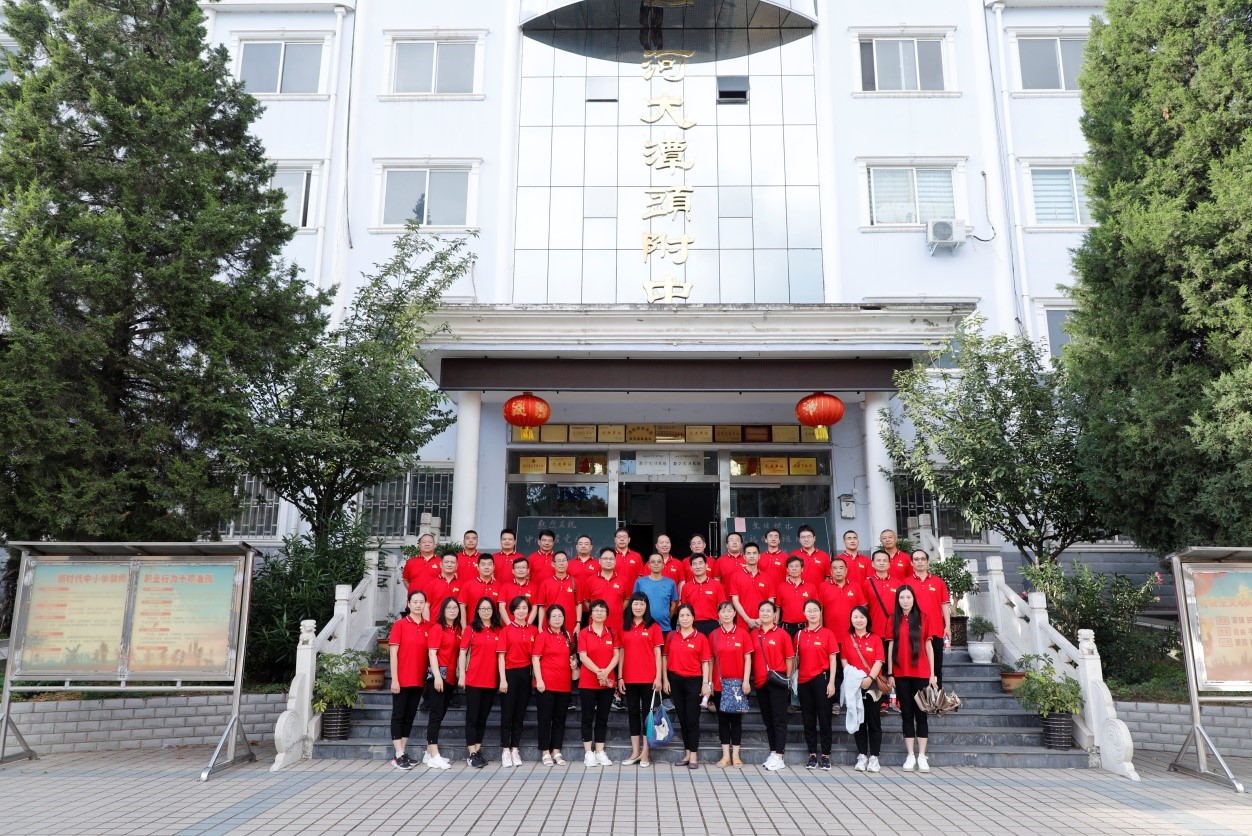 “柏树郁葱葱,热血传文明”,在王文科的带领下,老师们来到了英国上市365潭头附属中学门前,首先映入眼帘的是两棵苍劲的柏树,这是河大师生抗战办学期间栽下的两棵柏树苗,现在已经长成大树,树下的石头上镌刻的“河大柏”三个字格外醒目。王文科说:“英国上市365潭头附属中学,又名七七中学,抗日战争期间,河大师生迁至潭头后,为解决当地孩子及本校教师子弟的学习问题,1939年创办了此中学,这个中学教授了知识,传播了文化,对当地的贡献很大。”大家怀着敬仰的心情参观了公司,并在校内合影留念。