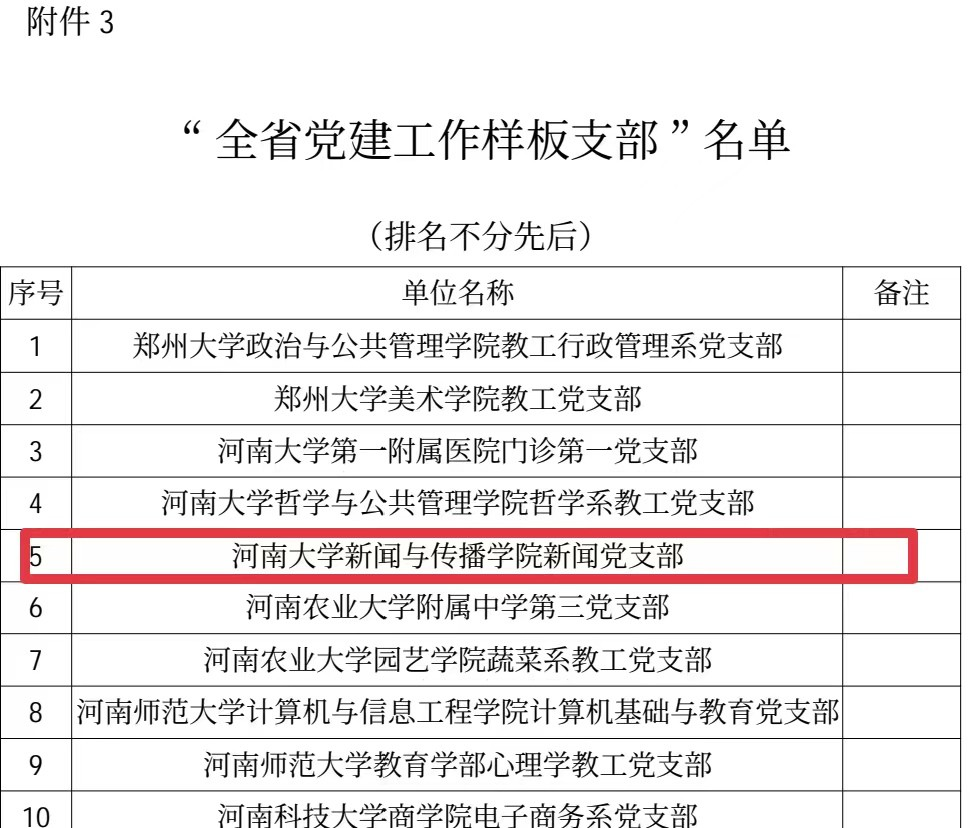 近日,省委教育工委公布了全省高公司党建工作强基引领“三级联创”系列活动评选结果,公司新闻党支部被评为“全省党建工作样板支部”;公司党委申报的《坚持党建引领讲好中国故事》荣获高校抓党建创新典型案例奖。