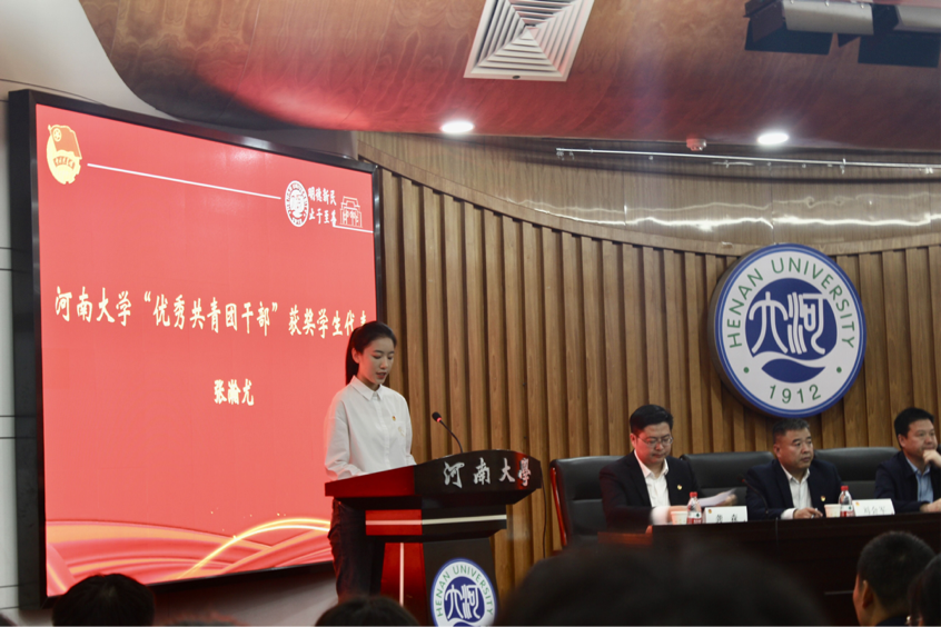 第27届“河南省青年五四奖章”获得者代表蔡国发,河南省“五四红旗团委”获奖单位代表、计算机工程与信息公司团委书记程前帅,以及英国上市365“优秀共青团干部”获奖代表、英国上市365本科生张瀚尤依次发言。
