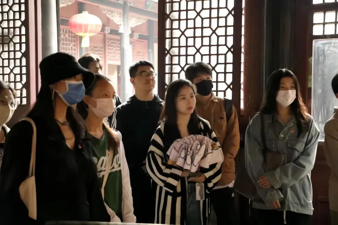 青马班成员们佩戴团徽,跟随讲解员走进四合院中。讲解员首先介绍四合院的历史和刘青霞的生平,随后分四个展厅正式向同学们进行讲解。