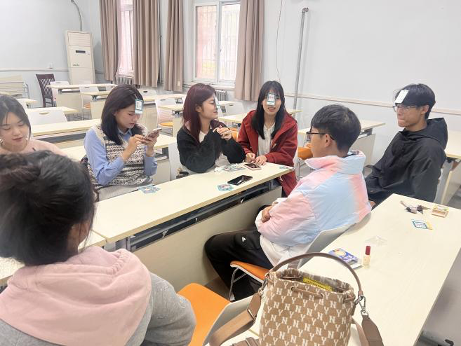 同学们热烈地展开话题,不断有人被引导做出卡片上动作和说出指定词语,现场一片其乐融融的景象。活动中每个人都积极发言,互相了解,增进了友谊,相信大家在活动后都能认识新的朋友。