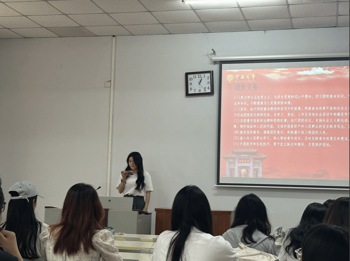 “作为一名光荣的共青团员,我们要学会从百年团史中汲取奋进力量,从共青团的奋斗目标和基本任务中找到努力的方向,提高个人思想道德素质、增强社会责任感、促进个人全面发展,成为合格的社会主义建设者和接班人。”2022级播音与主持艺术专业的郭海柔作为新团员代表说道。她号召新团员要履行好自己的团员义务,遵守团章。