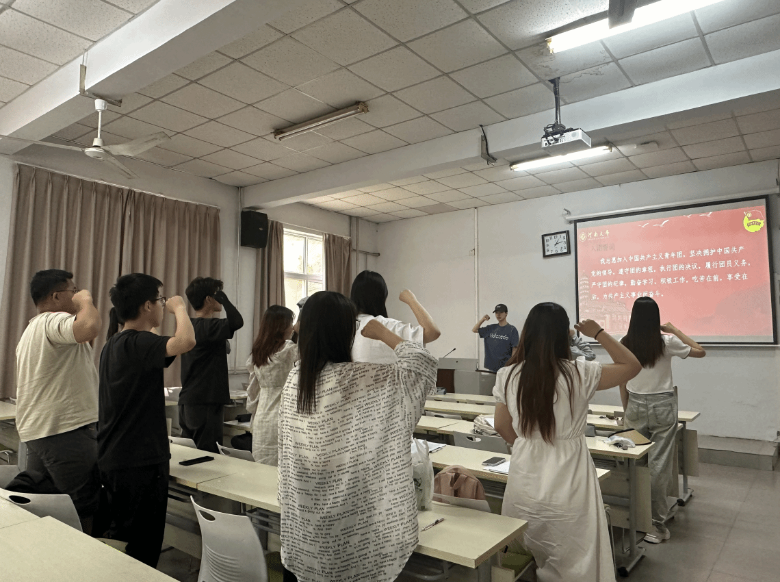 6月6日下午,公司于公司131教室举行2024年上半年新发展团员入团仪式。团委综合中心主任叶林宇、2022级分团书记于含雨、2023级分团书记胡安冉及全体新团员参加仪式。此次活动由团委组织部王一鸣主持。