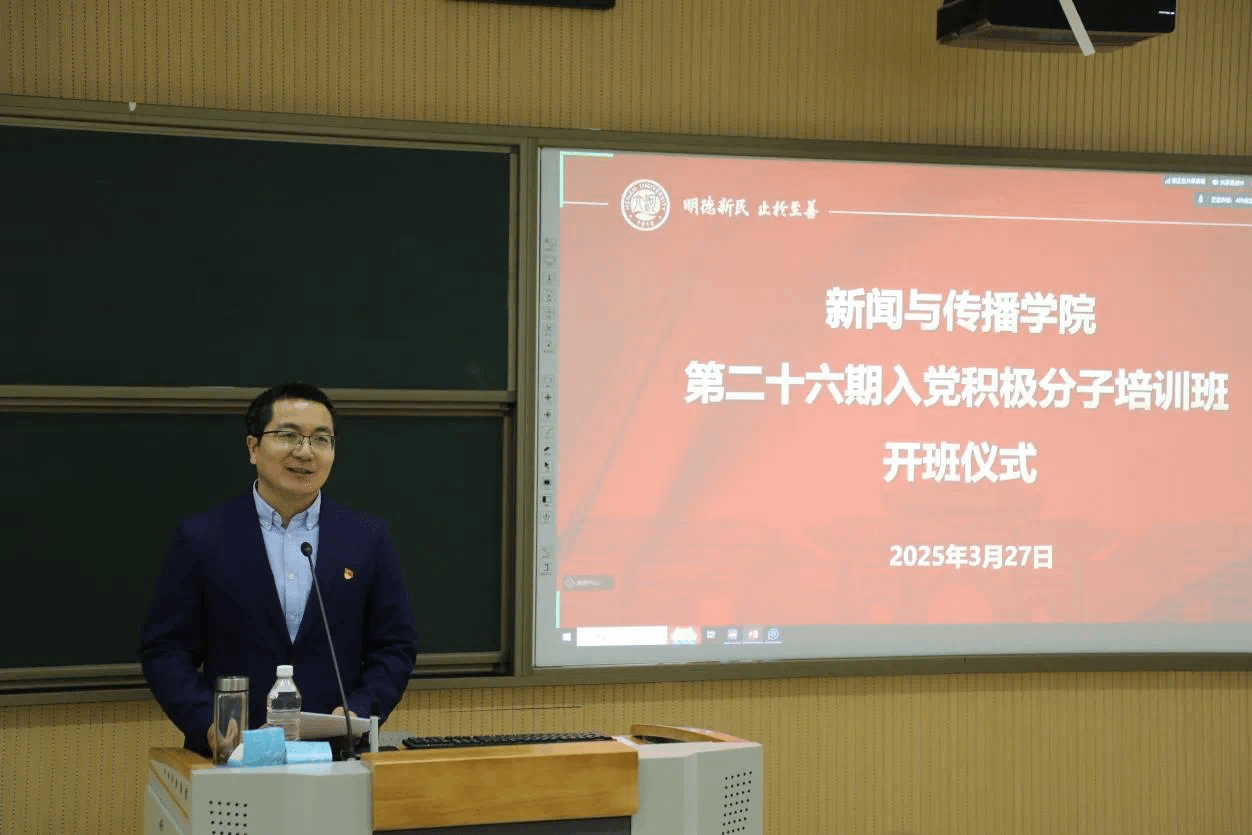 2023级辅导员史靖钰介绍了本次培训的具体安排,并强调了党课的纪律要求。入党积极分子代表2024级张一鸣同学在发言中倡议大家以“归零心态”深耕理论学习,以“铁律意识”遵守培训纪律,以实际行动诠释青春担当。2021级辅导员金冰冰强调,全体积极分子应时刻以党员标准严格要求自己,认真思考研讨,用理论知识武装头脑。